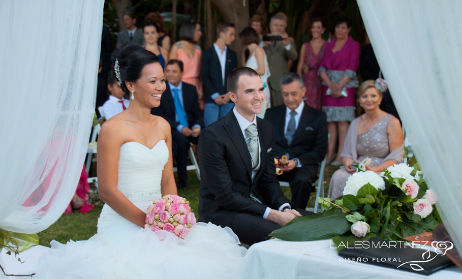 El novio y su familia eran de Almería, la novia y sus familiares de Tahití. El amor que unió a estos novios hizo esta maravillosa mezcla de culturas tan distantes y envolvió de encanto toda la ceremonia.